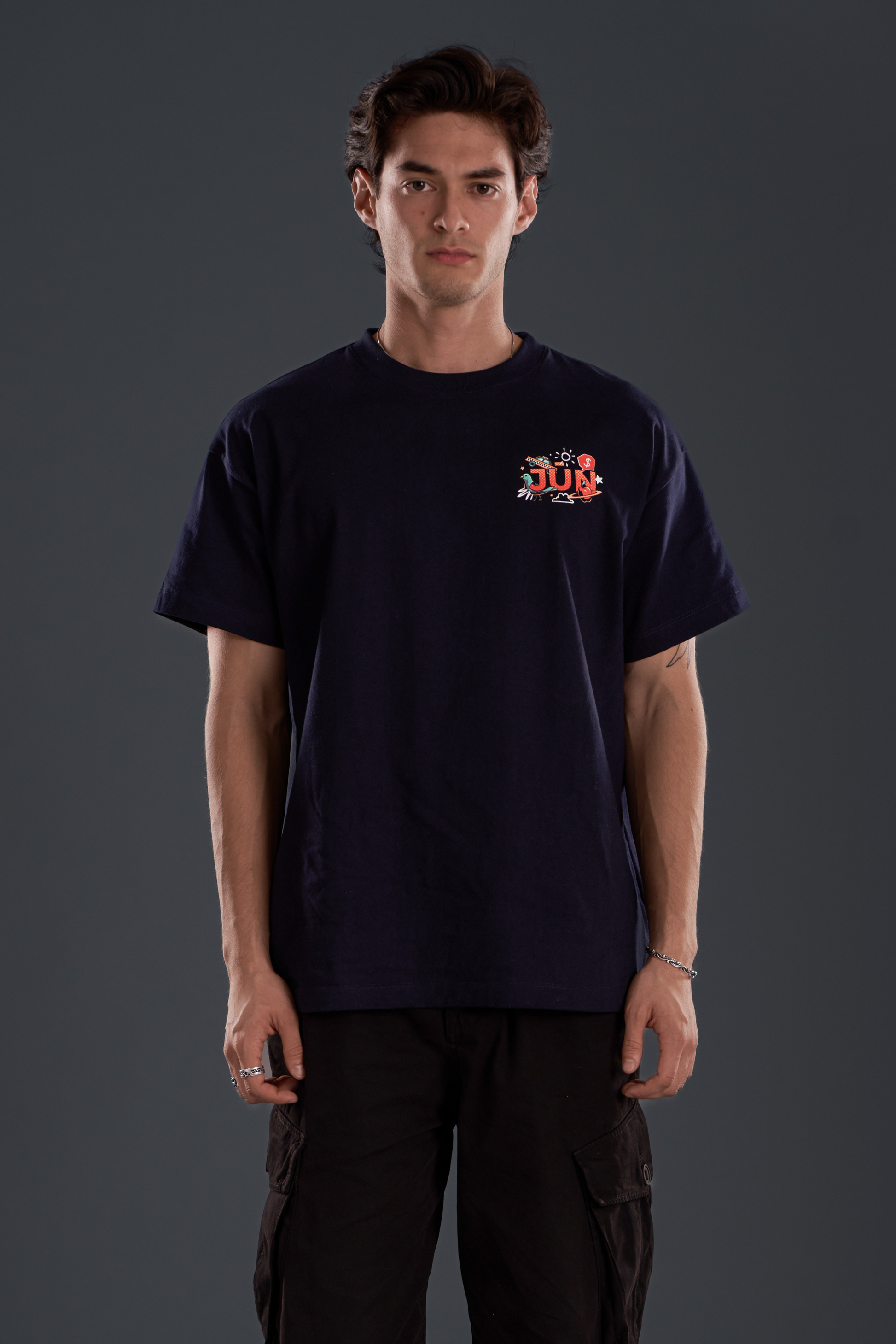 Angga Tantama is an illustrator from a small city in Indonesia, known for his bold, colorful vector artwork. A casual gamer in his free time, his art is full of vibrant energy, much like his creative process. Though he’s never been to New York, he’s always imagined it as a city of hustle and determination, where people push themselves to make their dreams a reality. Inspired by that spirit, his design for JŪN reflects the struggles and resilience of life in NYC—reminding us to respect everyone’s journey.