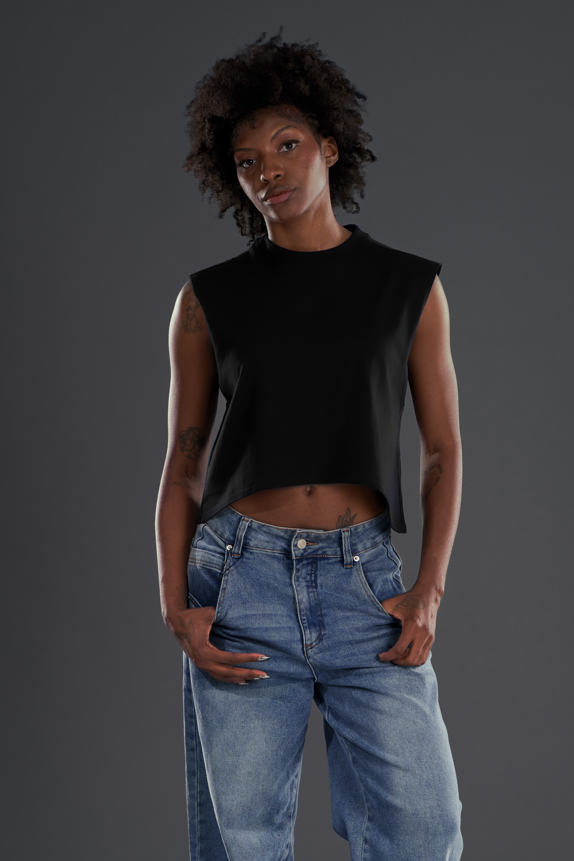 “We created the Cropped Muscle Tank as a refined alternative to the original — which we knew could run a little long for women. This version is bell-shaped and cropped for a more flattering, stylish silhouette, while keeping the same high-quality cotton and subtle collar embroidery. Clean, minimal, and made to move with you.”